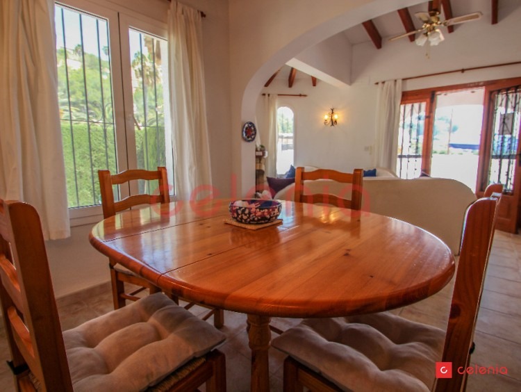 Colina is a modern, well-furnished villa enjoys a quiet location near Moraira resort. The villa has a private swimming pool, sun patio and outdoor dining area with BBQ. All the accommodation is on one level, entrance through a few stairs into a covered terrace with outside furniture, overlooking the poor area.